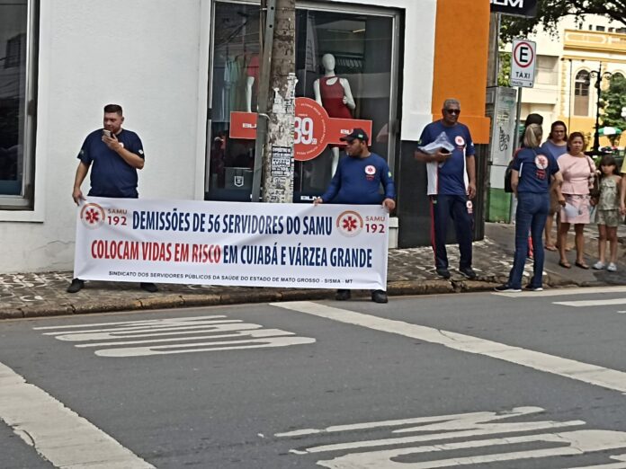 Os profissionais do Serviço de Atendimento Móvel de Urgência (SAMU) foram às ruas na manhã deste sábado (28), em Cuiabá, para protestar contra o desligamento de dezenas de trabalhadores anunciado pelo Governo de Mato Grosso.