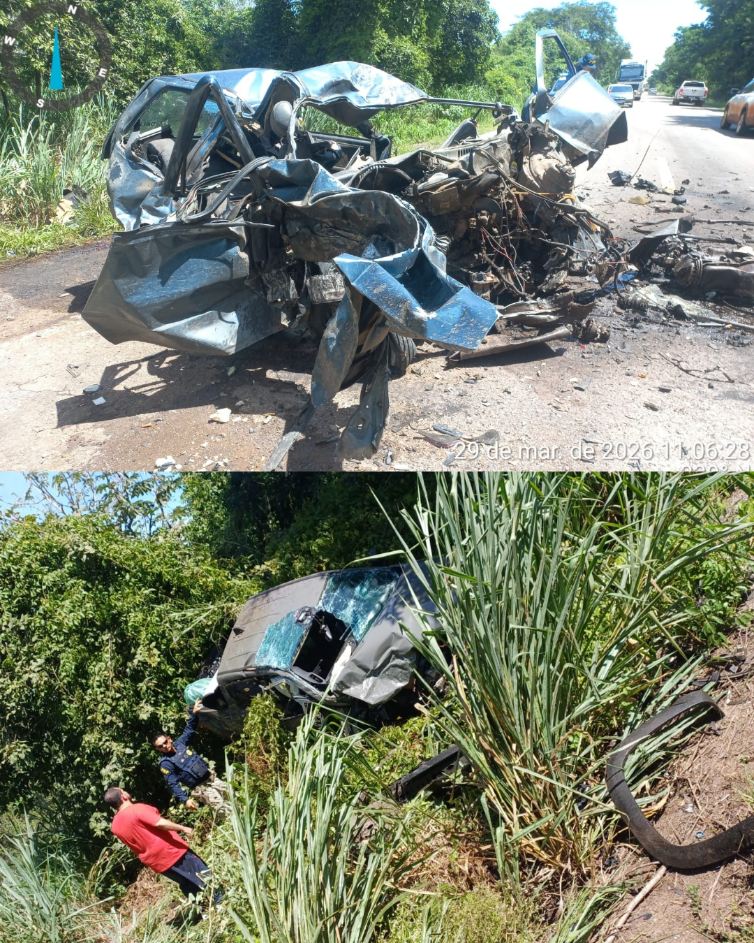 A colisão envolveu um veículo, modelo Fiat Uno e uma caminhonete modelo Ram. Com o impacto, o Uno ficou completamente destruído, enquanto a caminhonete saiu da pista.